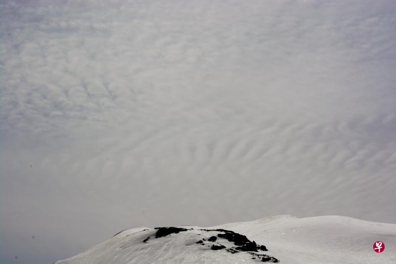 我看见正光,他戴的帽子虽然有个口罩保护嘴巴,还让一撮长须在风中飘扬,诶!须子也已挂上雪花,不,那其实是雾凇。我赶快给他拍了张照。
