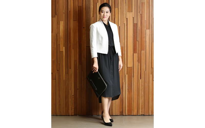 衬衫连衣裙(shirt dress)顾名思义,是结合衬衫和连衣裙款式上的优点而成的一种衣饰,相当百搭,单穿就散发都会丽人的质感,配上一件女装外套,更显干练。邬志健建议面试时衬衫连衣裙暗色为宜,不要穿花色纹路太多的,因它潜藏休闲感。