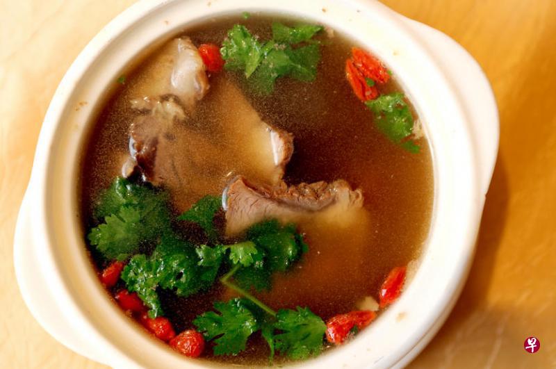 闵谦认为,虽然药膳汤对人体有益处,但新加坡宾客一看到“药”就有些抗拒,因此必须做些调整。虽然餐馆在炖汤中用上灵芝、当归、党参、泡参、桂圆等养生药材,但也加入龙眼、枸杞子、莲子、薏米调味,让汤头有甜味。