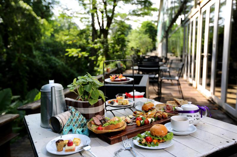 这里的自助餐下午茶分三大类:咸味食物如迷你汉堡包、沙拉和印度圆形脆饼(papadum);烤牛肉、香料鸡肉和烤蘑菇等三文治;甜点如莓果蛋糕、芫荽奶油酥饼和咖喱叶杏仁布朗尼。