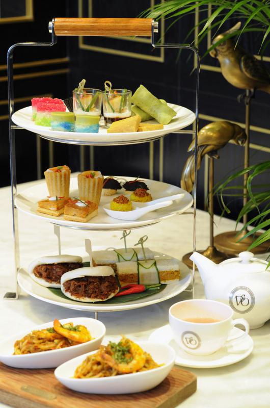 下午茶特色之一,即包括其招牌菜如小金杯(Kuay Pie Tee)、干叻沙、参峇牛肉包、木薯糕配椰糖和椰浆(Kueh Beng Kah)和渔网煎饼配椰糖酱(Roti Jala with Gula Melaka Sauce)。