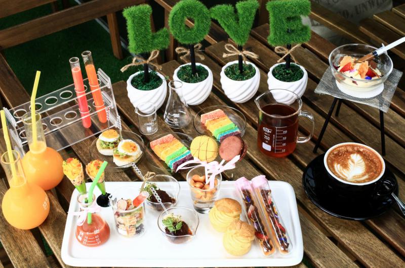 到这里喝下午茶像是一场“实验”,食物和饮料多数装在类似实验室的试管(test tube)和烧杯(beaker)的器具。