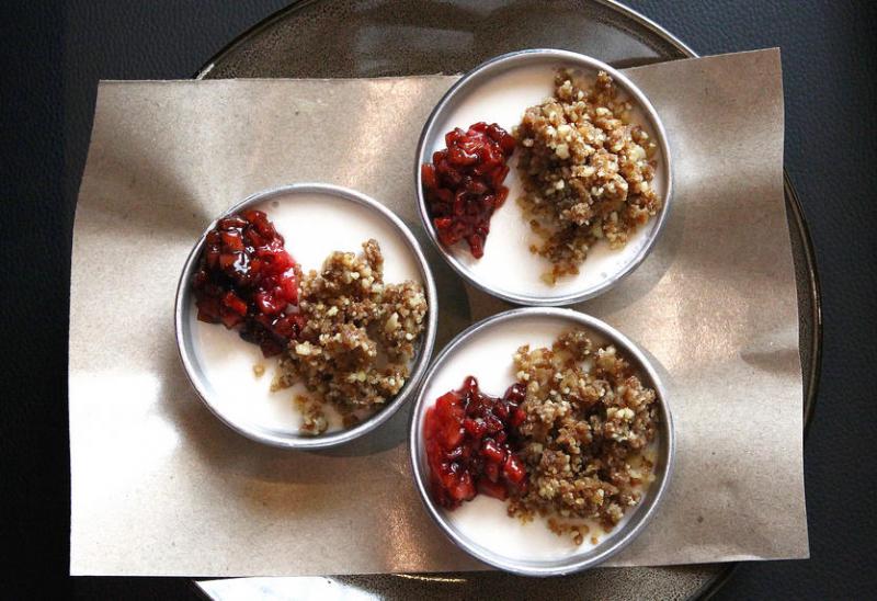 COO Bistro的菜品走“Glocal”路线,也就是结合环球(global)和在地(local)两种性格。比方说,“中峇鲁拼盘”就有烤猪腩、鸡肉沙爹、椒盐澳大利亚肺鱼等东西合并的食材,并用南洋的参峇辣椒和炸虾饼混搭。甜品“中峇鲁水粿”其实是意式奶冻(Panna Cotta)顶着糖衣核桃和草莓醋酱,但却以国民小吃水粿的形式上桌。餐馆刚在中秋节举办月饼品尝大会,邀请住客一同享用,借机了解本地节庆文化。