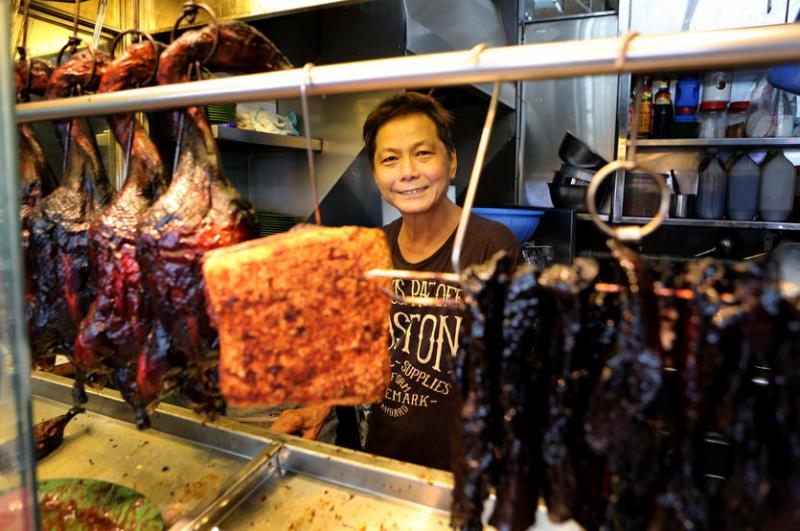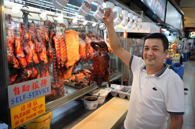 他说,自小对小贩行业感兴趣,“我小学时去买鸭饭,就喜欢看摊主怎么切鸭切鸡。原本,我是做五香虾饼生意,朋友的父亲问我有没有兴趣做烧腊,就跟他学,然后研究自己的食谱。”