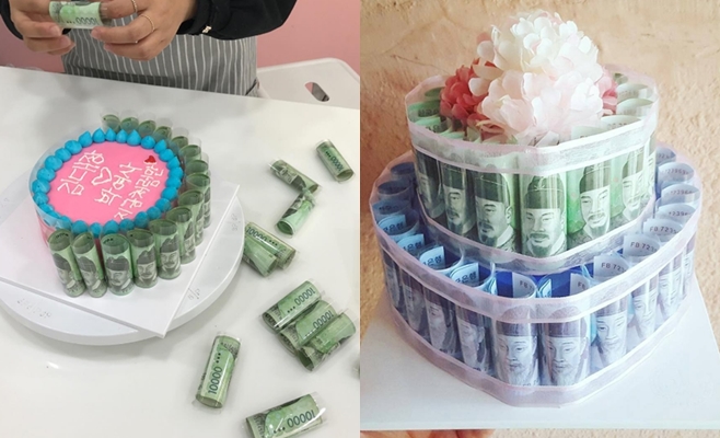情人既务实,却又爱吃?那就送他(她)升级版的“钞票蛋糕”吧!只要在现成的蛋糕外面摆上一卷卷的钞票,用缎带系紧,最后再绑个漂亮的蝴蝶结就大功告成啦!手残的你也一定能办得到!