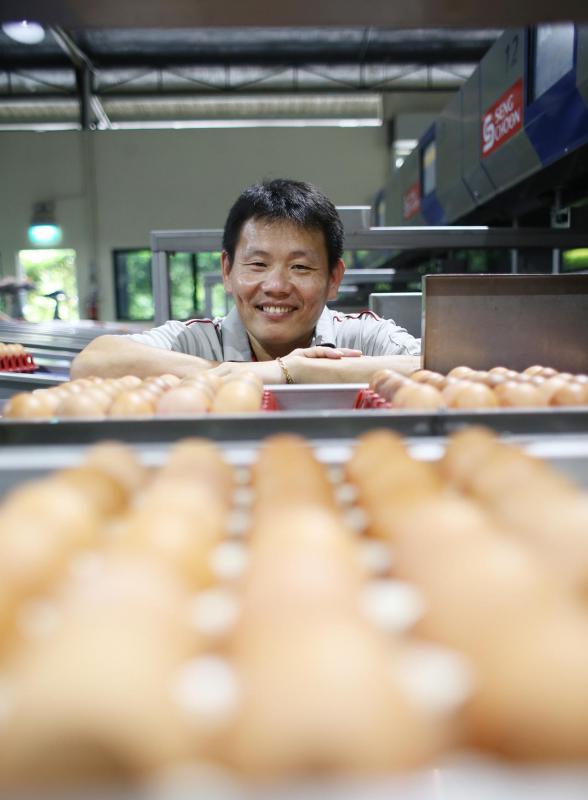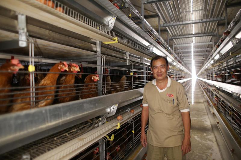 成春农场执行董事许耀昆(41岁)受访时说,早期养蛋鸡为开放式鸡舍,现在农场向欧洲学习,采封闭式鸡舍,多层鸡笼。他说,如今科技变化很大,10年前一只蛋鸡一年生280个蛋,现在产量已提升至300。至于土鸡,一年约只能生产100个蛋。生产力提高是多年来工业配种的结果。