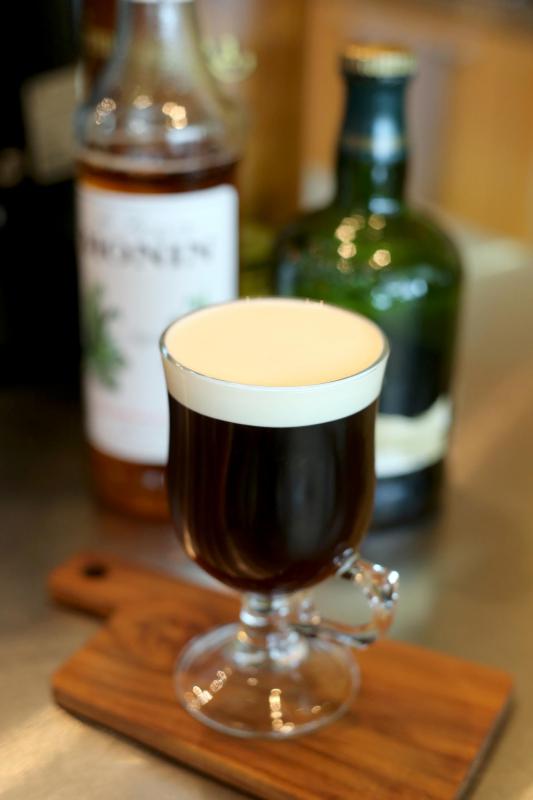 Natasha选用危地马拉(Guatemala)咖啡豆冲泡爱尔兰咖啡,红莓、焦糖及巧克力基调搭配酒精是天作之合;酒精饮料则选用爱尔兰威士忌Coonemara Irish Whiskey,独特的雪茄烟草味增加了饮料的风味。爱尔兰咖啡上的鲜奶油是现打现用的,这个重要步骤使咖啡口感顺滑,非一般爱尔兰咖啡可相提并论。