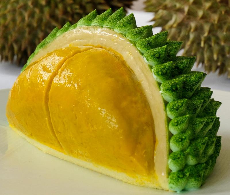 现在又是榴梿飘香季节。除了直接享用榴梿果肉,榴梿也经常变身各式甜品美食,早年有榴梿蛋糕、榴梿瑞士卷、榴梿炒饭等,近年还多了榴梿焦糖布丁、榴梿肉干、榴梿炸煎堆等,东西方口味皆有。无论外在以什么形式呈现,厨师们都尽量确保榴梿的美味不会流失。