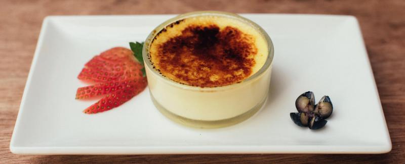 他认为,焦糖布丁虽然只用四种材料,却是非常美味的西式甜品,因此想用道地食材如猫山王榴梿搭配。制作过程中,做榴梿奶黄最具挑战,每个步骤要很精准,需要六小时。