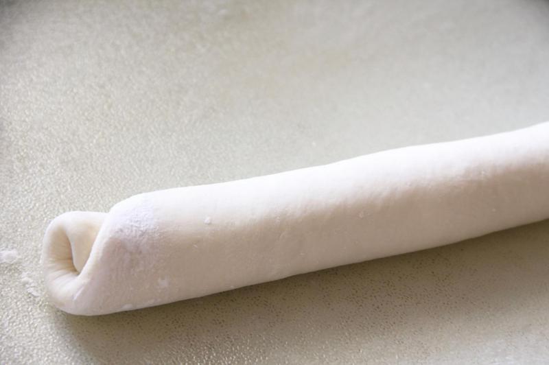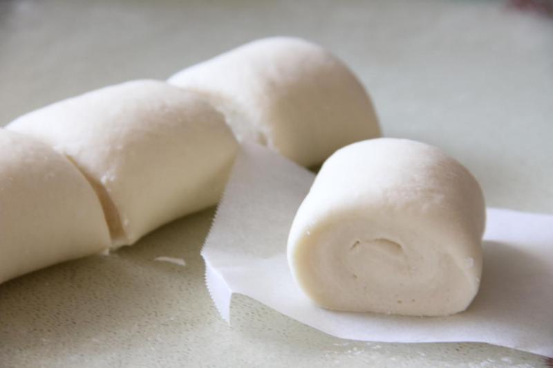 馒头成品要做得细致,分割之后,揉面搓圆得有一定的手上工夫。较容易的做法是把松弛后的面团擀成长方形,折三折,再擀平,然后卷成圆筒状,分割成小树桐状,不需要搓圆。这样,馒头表皮较光滑,内部的气孔分布也均匀。