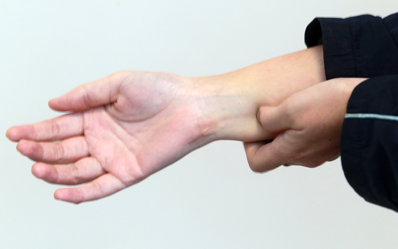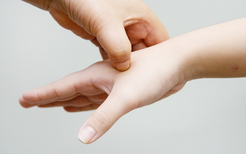 操作:用对侧拇指按在穴位上,朝小指方向均匀地用力指压,每次按摩5到10分钟。
