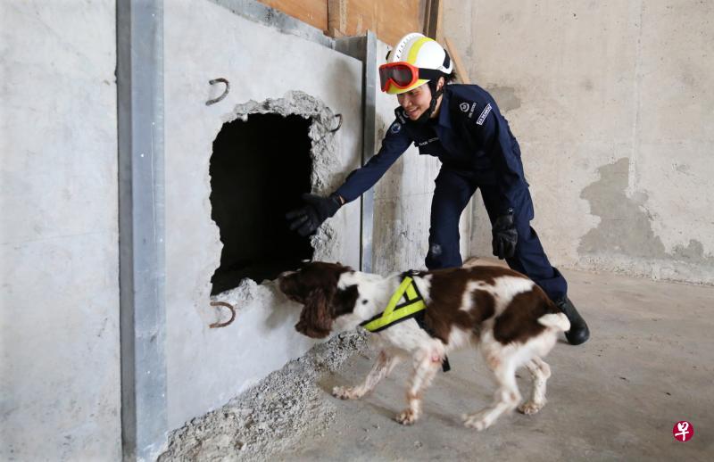 民防部队灵犬搜寻队组长但琼曾经不是那么喜欢狗,没想到在工作上每天接触狗儿后,它们如今已变成她生活中的一大原动力,她也陆续领养了三只退休狗儿。