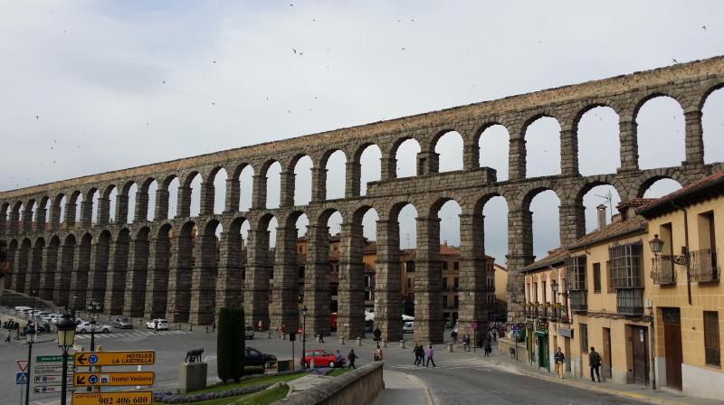 罗马人是出色的工程师,在结构系统上使用拱,拱顶与穹顶,使砖石建筑达到前所未有的宏伟。且看看塞戈维亚这段一共有128根巨柱的引水渠有多壮观:长为813公尺,相对于地面的最高点为28.5公尺,相当于十层楼。它因此凌驾古城普遍三四层高的楼宇,尽显气势。最难得的是它的“耐”:石块与石块之间完全没用灰泥“粘”合的这座花岗石结构经