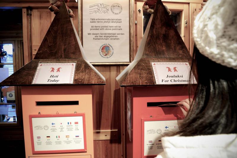圣诞村内还有一个圣诞老人邮局。从这里亲手寄出的明信片是多么特别啊!邮局里有两个邮箱,一个为当日寄出,另一个为圣诞前夕寄出,很有心思。想象亲友在圣诞节收到来自圣诞老人住所的明信片,那感觉一定很神奇吧!