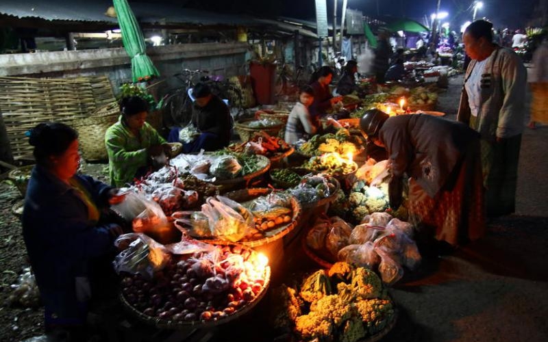 市集去得多,但凌晨四时爬起床去看市集还是头一遭。说是市集,也只是当地和周边山民在河岸边的大马路摆摊罢了,卖的是当地人日常生活所需,像蔬菜、水果和手工制品。