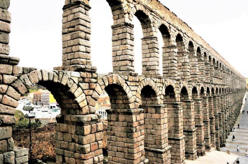 一下车,立即给眼前一道大拱门吸引,也不是拱门,它更像一道桥,是大块石头砌起来的大桥。导游解释,那是2000年前罗马人统治伊比利亚半岛时建造的水利工程遗址,至今还可使用来引水入城。原来这座古罗马水道桥,也称能运水的长城,全长813米,分上下两层,由148个拱门组成。