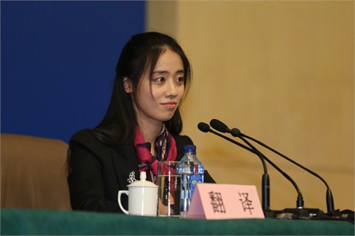 不少人因此为翻译官们捏了一把冷汗,生怕他们的翻译词不达意,让现场的国内外记者一头雾水。然而无论台上的演讲者用怎样冷门生僻的字眼,气质优雅的美女翻译都从容不迫地做了一个比一个精彩的翻译。