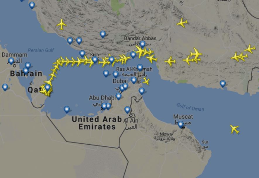 海陆空交通管道被堵后,迫使从卡塔尔多哈机场起降的卡塔尔航班只能使用仅剩的几条窄小的飞行航道。