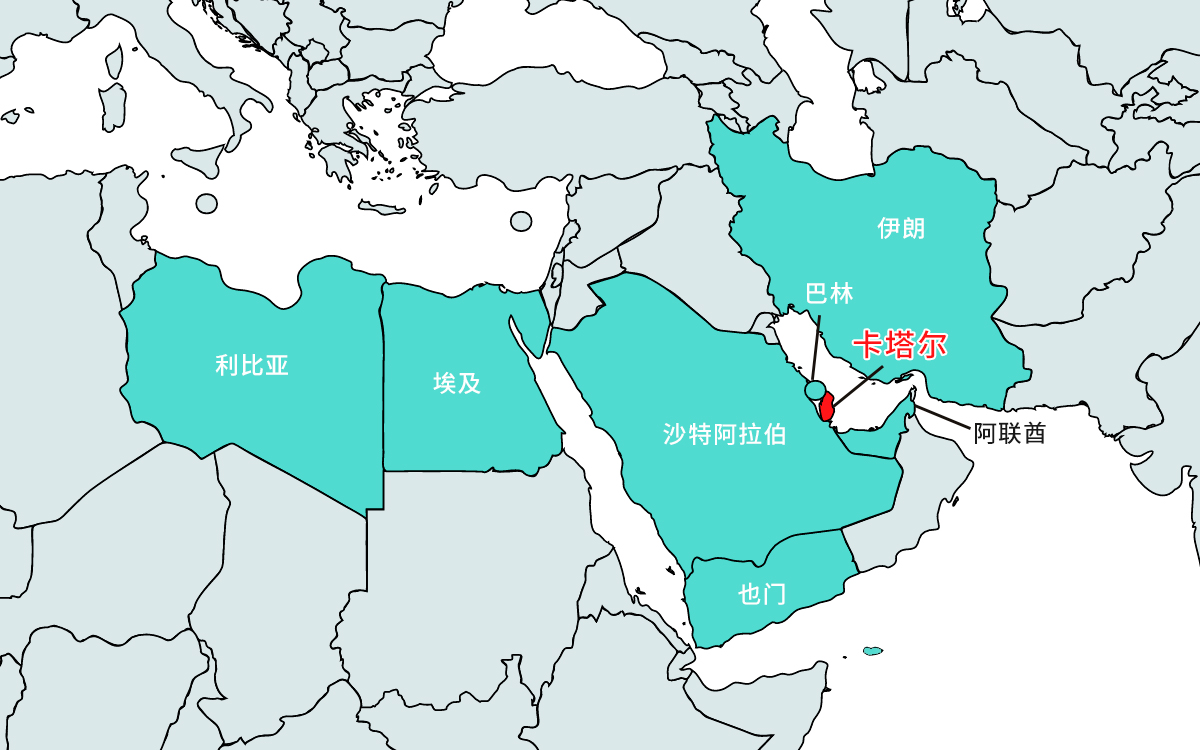中东多国昨天(5日)突然以卡塔尔支持恐怖主义活动为由,宣布与卡塔尔断绝外交关系。