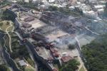 47岁的神谷生江与丈夫一起看着火神肆虐。她流着泪对记者说:“真是太伤心了”。
