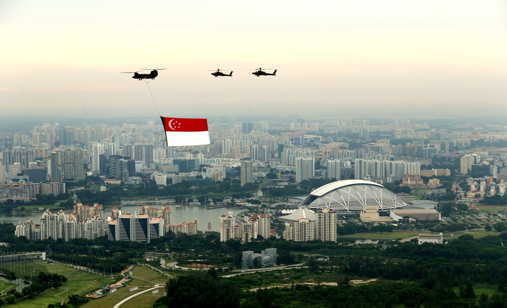 1970年的国庆庆典,首次加入直升机悬挂巨型国旗飞越庆典现场上空的环节。当时使用的国旗长三公尺、宽两公尺,仅为现用国旗的81分之一。今年悬挂国旗的契努克直升机将以75公里到110公里时速飞跃我国南部海岸。