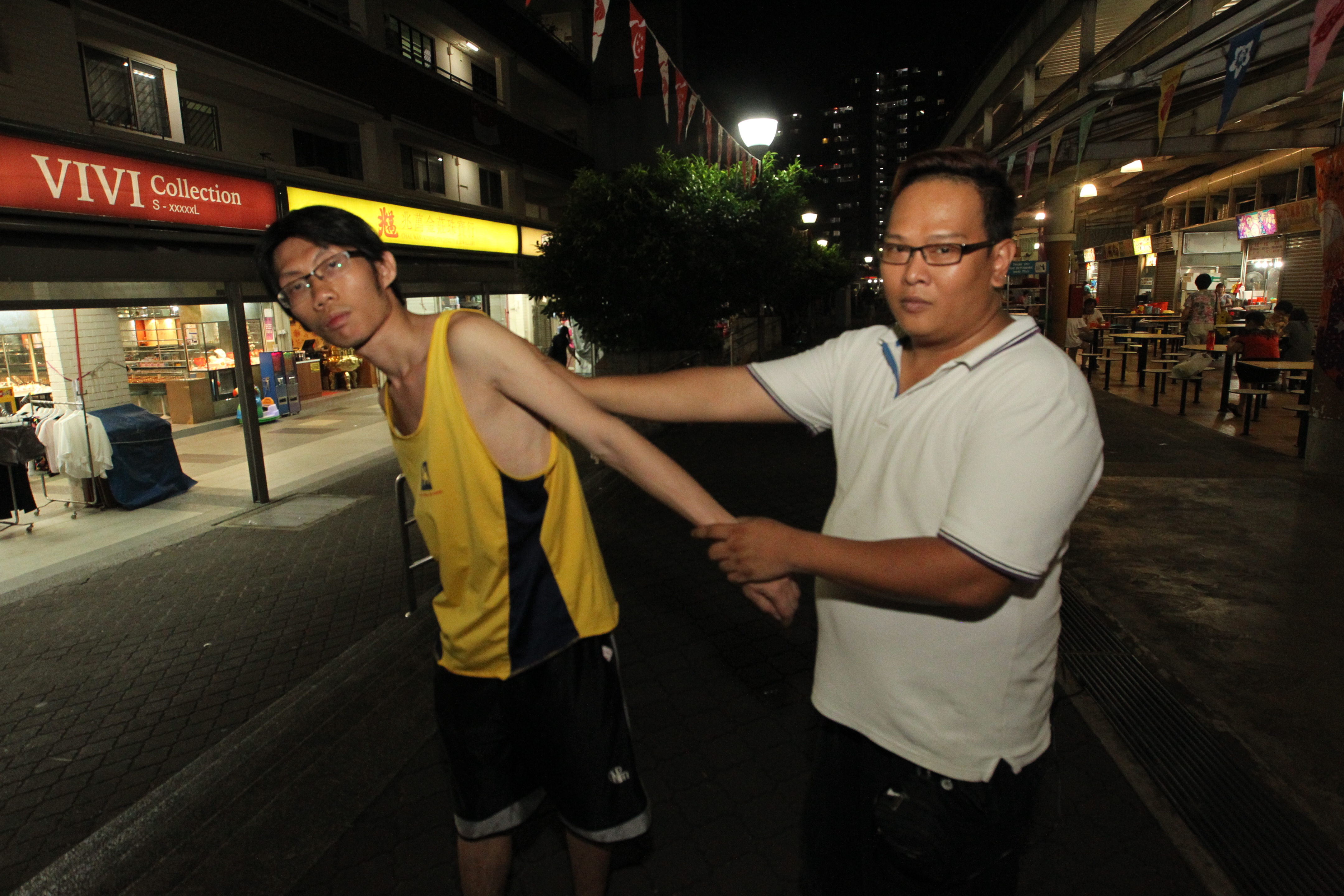 夫妇俩过后分头跑,眼看小偷多久要在眼前消失,店员大喊“抓贼”,引起路人注意。两名在附近的热心民众林坤耀(左)与曾怡升(右)听到叫喊声,穷追20米制服逃跑的男子,交给警方。