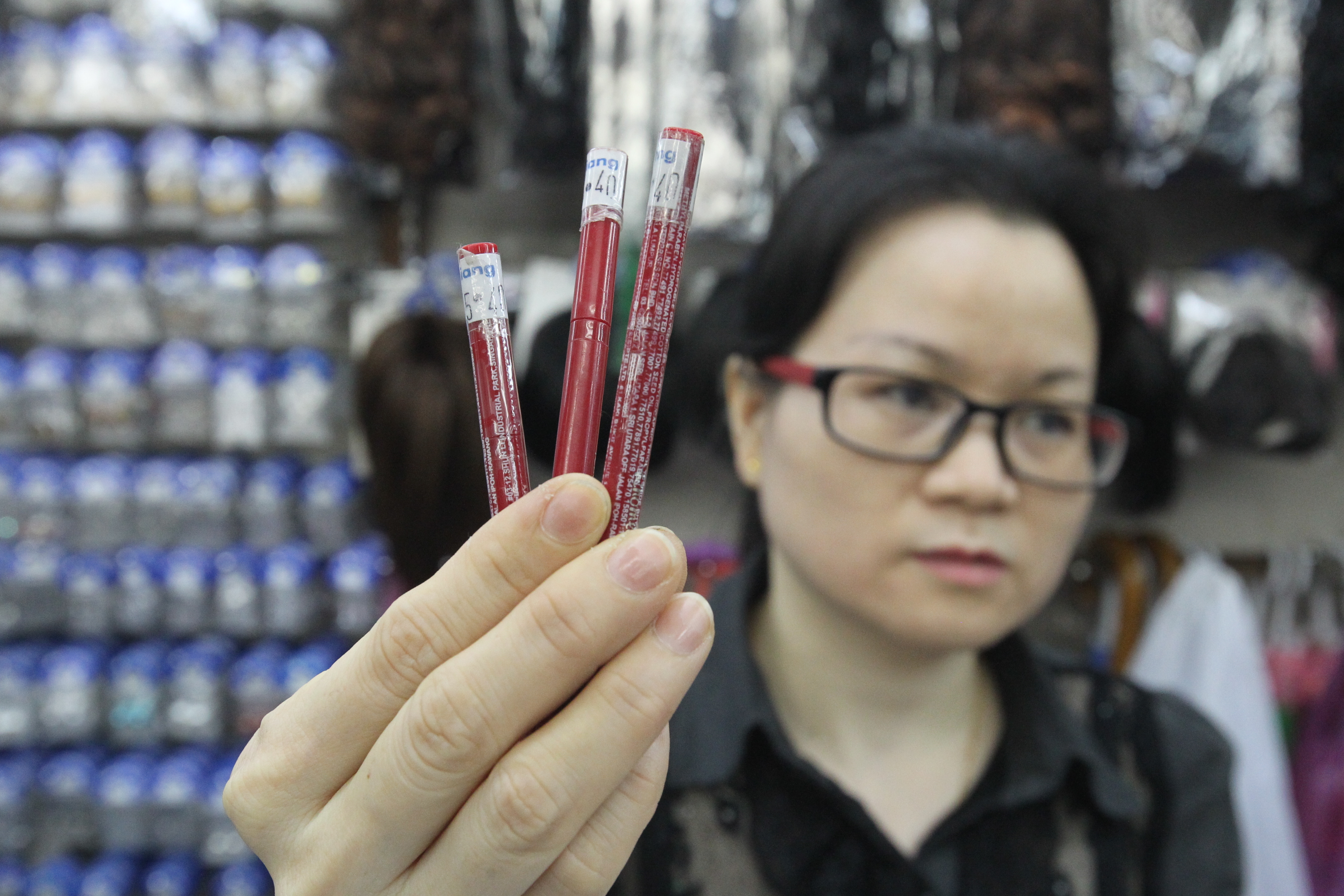 除了直发器,警方过后也从妻子身上搜出三支未付款、总值约15元的唇膏。