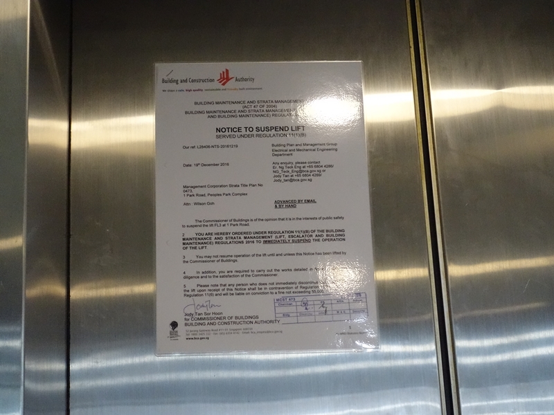 另外,有居民反映三架电梯中,其实其中一架已维修至少两个多月,让她非常不解。据观察,该架电梯门外贴着一张建设局于12月中发布的告示,说明电梯必须停用。