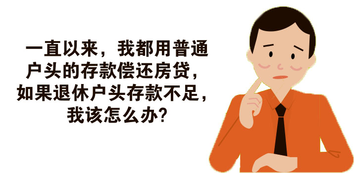问:一直以来,我都用普通户头的存款偿还房贷,如果退休户头存款不足,我该怎么办?