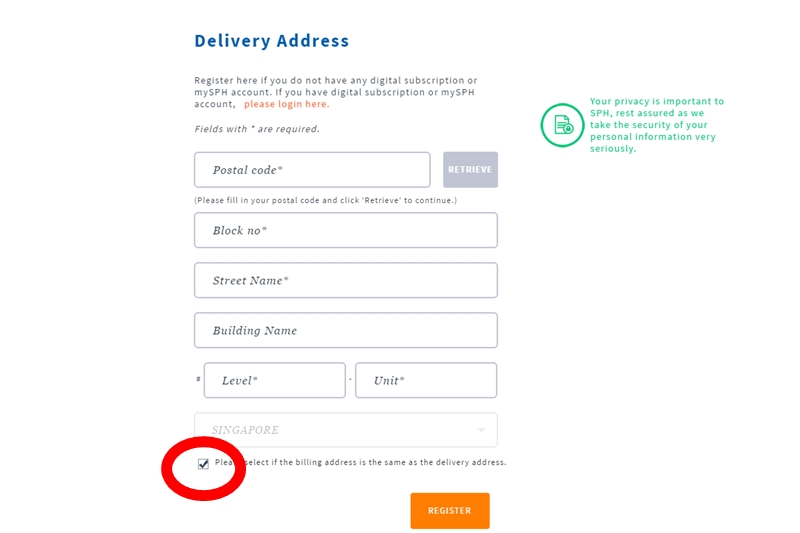 若你的收件地址与信用卡账单地址相同,请在格子中打勾。
