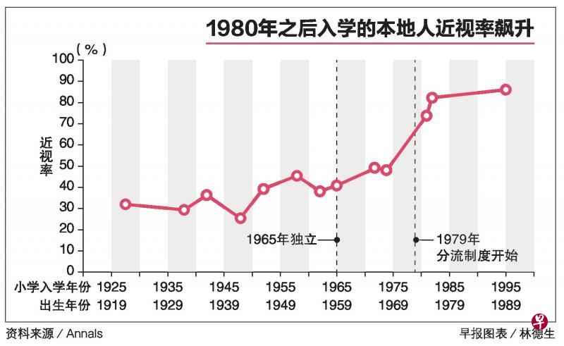 本地的这篇研究指出,新加坡独立初期的教育制度以强调生存为主,到了70年代末开始改革,倡导因材施教。从1979年和1980年起,小四和中学开始分流,一些学校还从1983年起试行高才班等。也是新加坡国立大学苏瑞福公共卫生学院流行病学教授的苏祥美认为,竞争激烈的求学环境意味着学生花更多时间读写,较少出外活动,造成视力恶化。