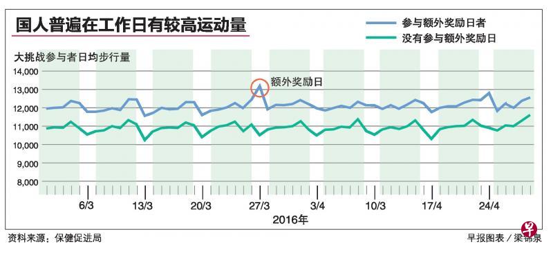 当局在某个周末推出额外奖励日,提供多一倍的积分,吸引8000人参与,显示类似设计有助提高国人在周末的运动量。