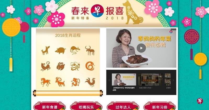 佳节期间,zaobao.sg的《2018年春来早报喜》新年特备专区也准备长达1小时的新春特备节目,陪你开心迎接狗年。观众可在新春特备节目中看到诙谐有趣的相声、优雅的传统南音表演,以及悦耳的新加坡华乐团演奏。