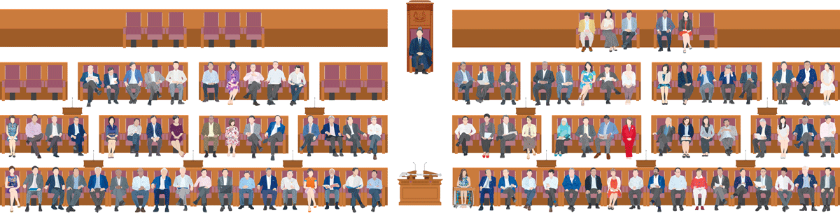 受李显龙总理之邀,记录议员在国会议事厅的神采姿态,《联合早报》视觉部主任陈聪明以半年时间观察并绘制了“国会全景图”,呈现议员自然生动的一面。