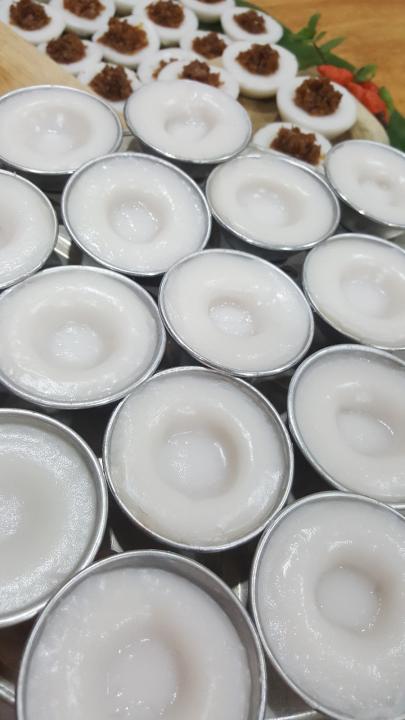 常见的白米加上水磨成细幼的米浆,装到小碗里面蒸出来的,就是本地街头巷尾常见的小吃“水粿”。来自中国潮汕地区的水粿,生产方式从早期的全手工自制,到现在工厂批发的成品,只要加热就可以食用。