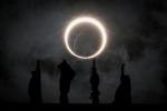 下午1时23分,月亮移到太阳与地球之间,掩盖太阳94%的面积,形成“火之环”(ring of fire)的景象。