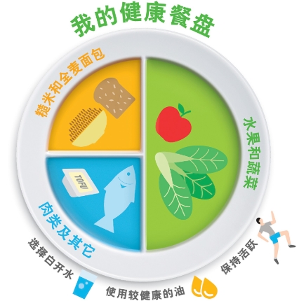 保健促进局推出的“我的健康餐盘”,列出均衡的一餐应包含哪些食品种类。(保健促进局)