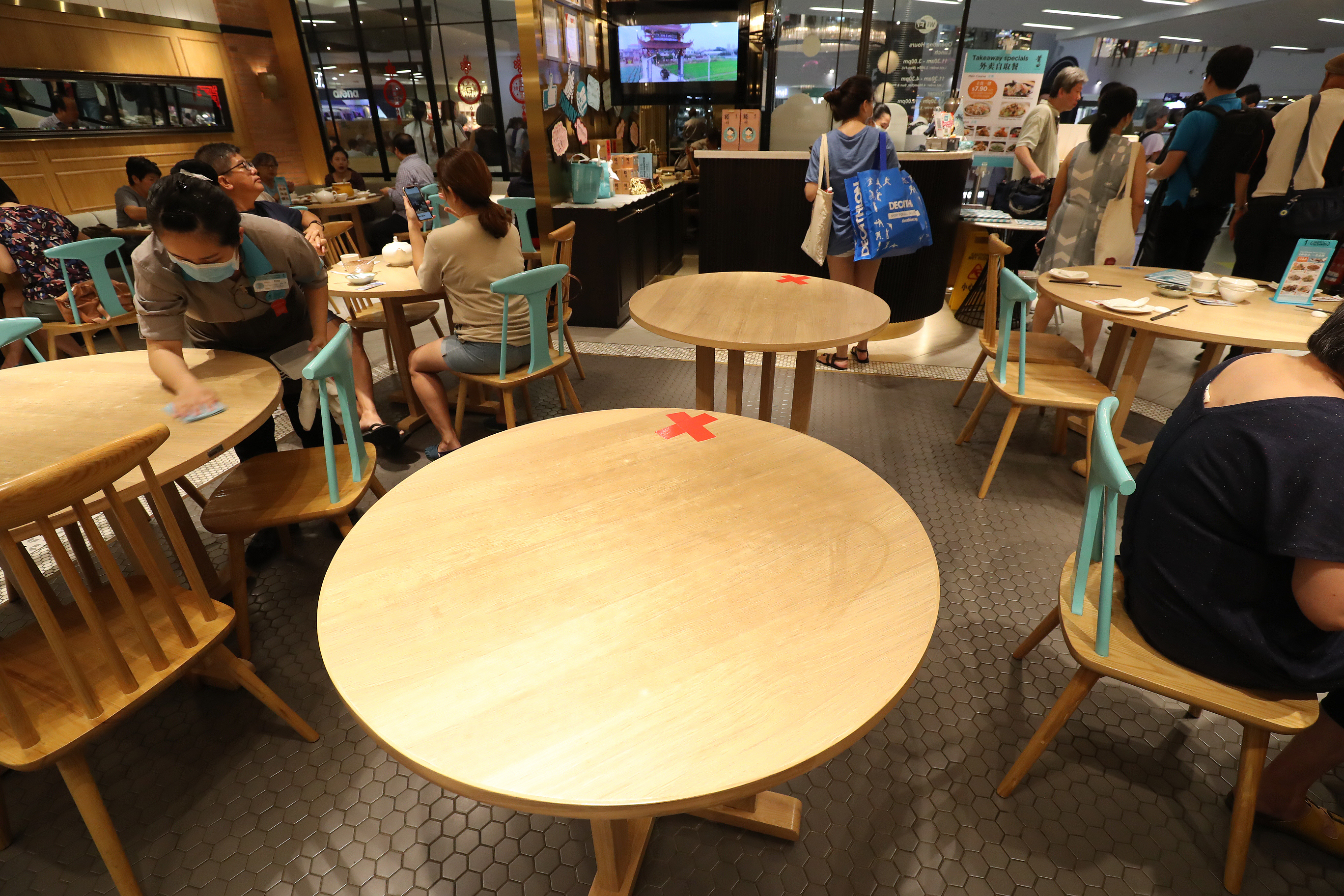 今日图集,带你看看NEX购物商场的一些餐厅和超市如何开始落实安全距离措施。