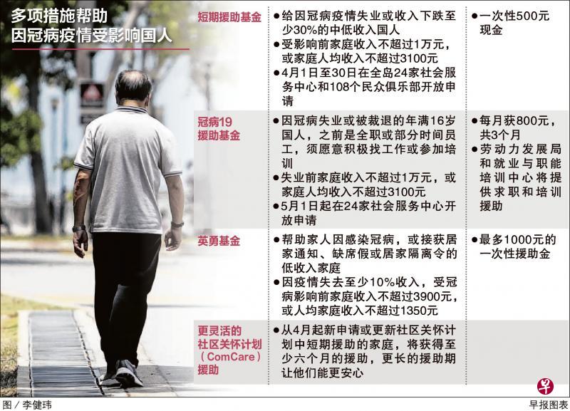 因冠病失业或收入下跌至少三成的本地公民或永久居民,下个月可获得一次性500元援助金,帮助中低收入国人渡过眼前难关。