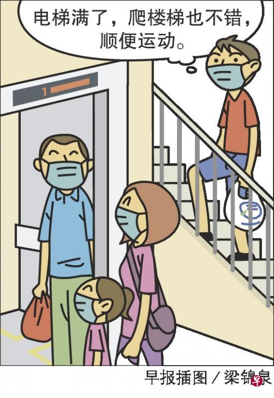 答:除了同住的家人,大家应尽量减少与他人的接触。与他人乘搭电梯时,尽量维持一米的安全距离。如果电梯空间有限,请等下一趟电梯。