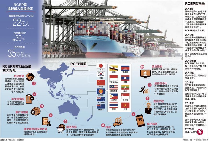 RCEP签订如何影响中国与亚细安各国的贸易互动也备受关注。星展集团经济师谢光威认为,RCEP可从整体提振区域经济,而最大的效应是作为一项具有法律约束力的协定,它提供的规范将为区域合作带来更多稳定性。