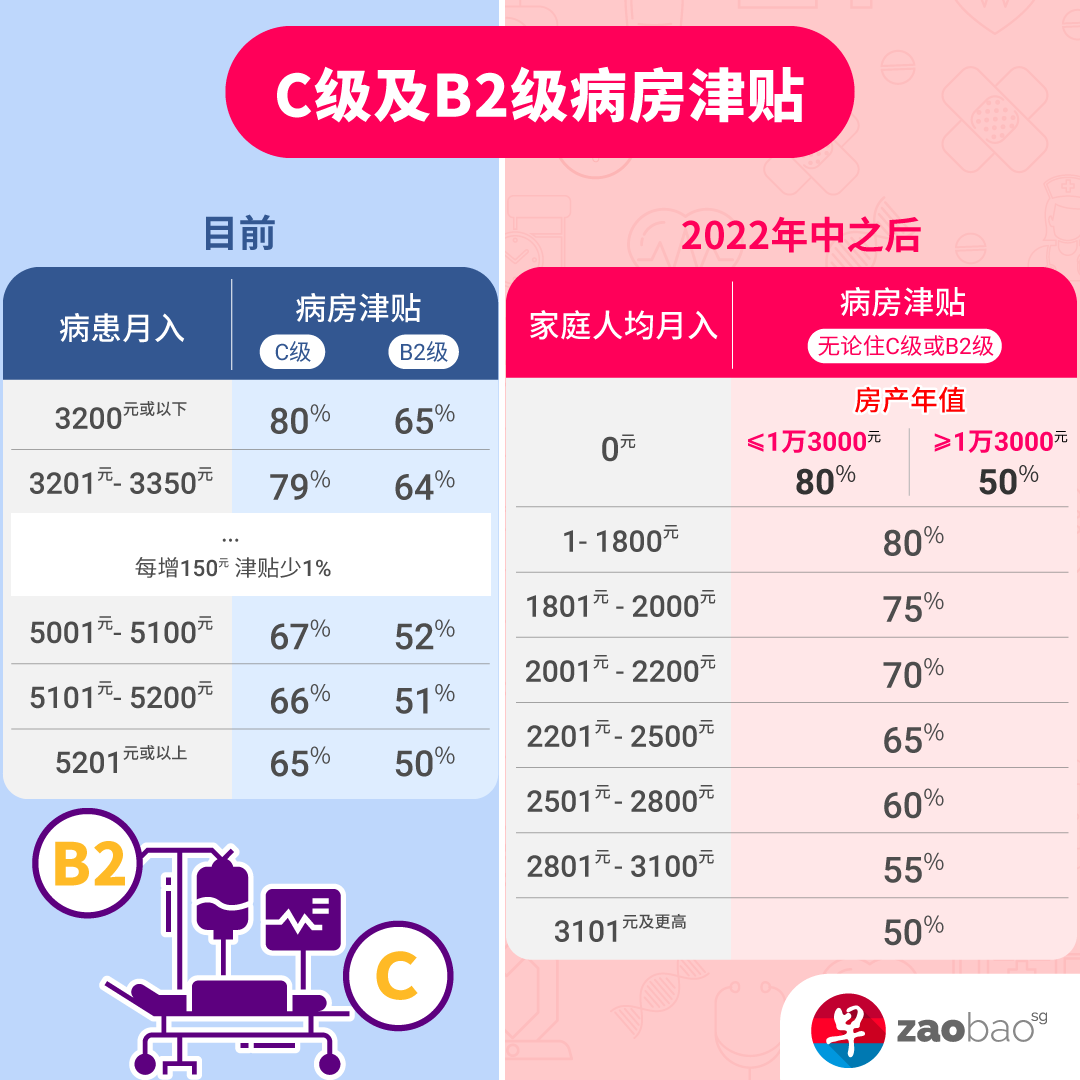 然而,B2级和C级病房在硬件上的差距多年来已越变越小,卫生部认为是时候改变,不应该再以病房级别来判断病患能获得多少津贴,而是根据病患的家庭人均收入。如此一来,病患能自由选择他们想要住的病房等级,不会被津贴额受限。