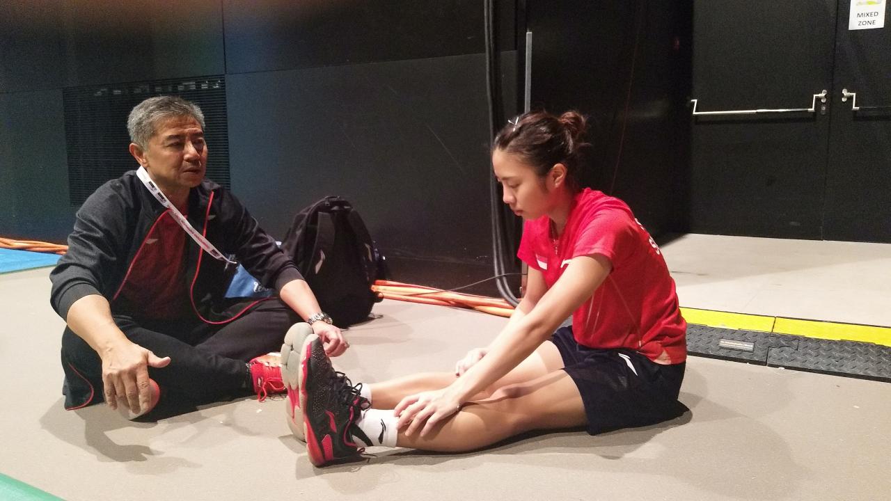 在世锦赛16强对垒越南女将武氏庄的比赛里,杨佳敏因为背伤请求了医疗暂停。
