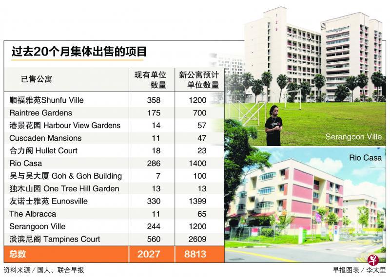 根据新加坡国立大学房地产研究所的统计,去年和今年来至少12个私宅项目集体售出。这些项目的地段重新发展后,预计这两年内有8800多个私宅单位推出市场。