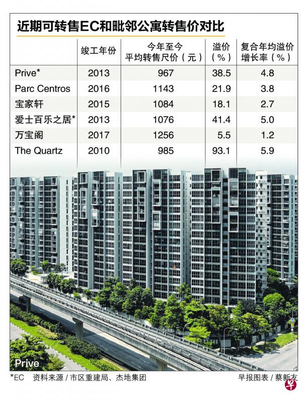 橙易产业研究与咨询部主管孙燕清说,出售EC的溢价幅度通常比一般公寓来得高,而去年楼市回温更进一步推高转售价。她指出,EC转售价是和私宅转售市场挂钩。